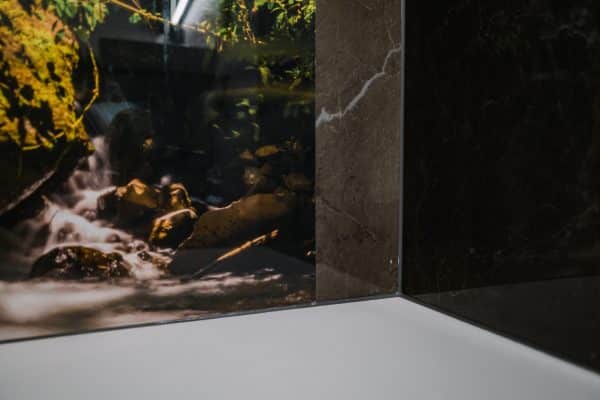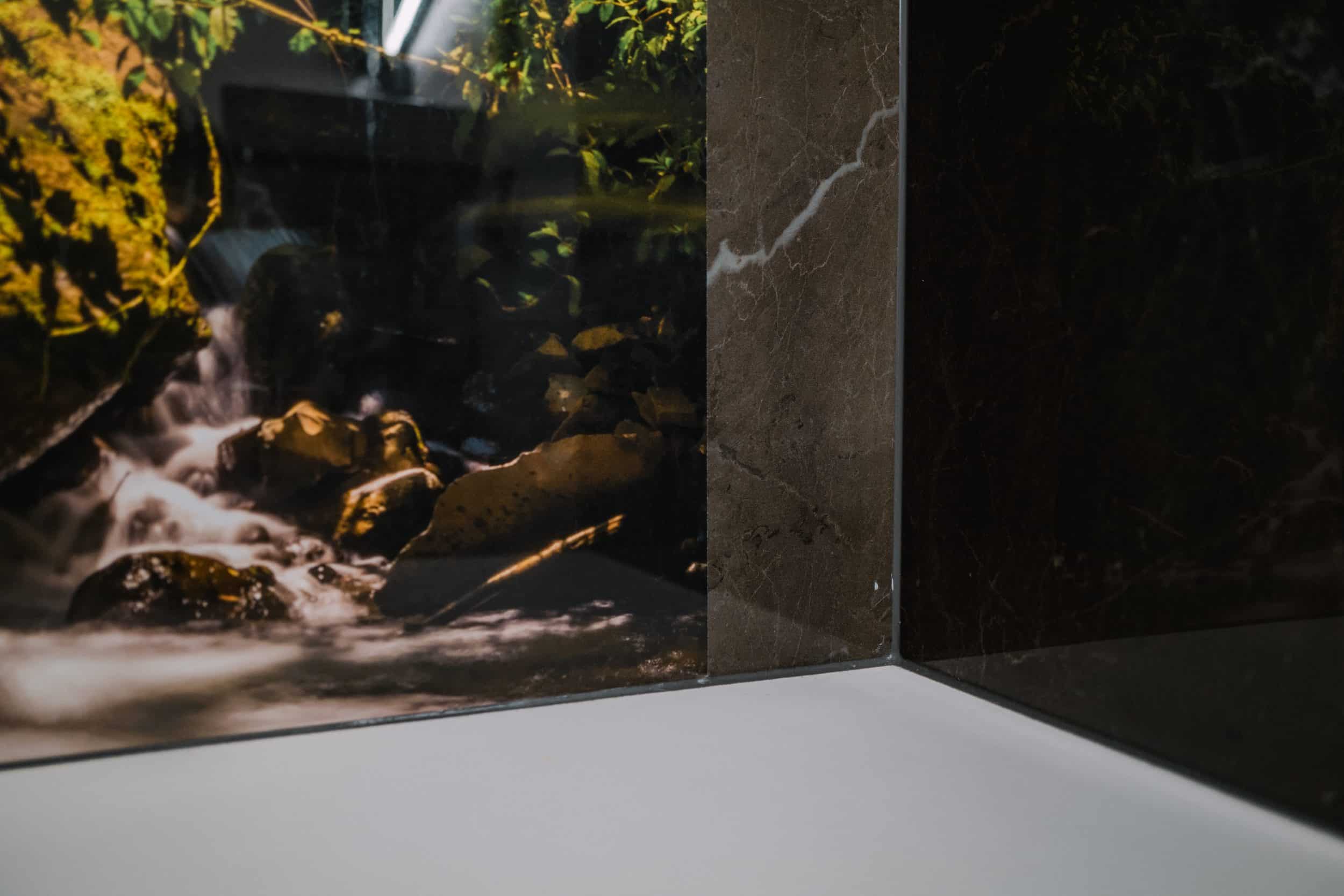 Durch die digitale Bedruckbarkeit der Wand- und Bodenbekleidung sind der Kreativität keine Grenzen gesetzt. Spektakuläre Motive und ausgefallene Texturen eröffnen völlig neue Möglichkeiten in der Innenarchitektur. Mit unserem einzigartigen Material und modernster Technologie entstehen Bäder und Raumkonzepte von bemerkenswerter und außergewöhnlicher Art, die nicht nur funktional sind, sondern auch ein ästhetisches Statement setzen.